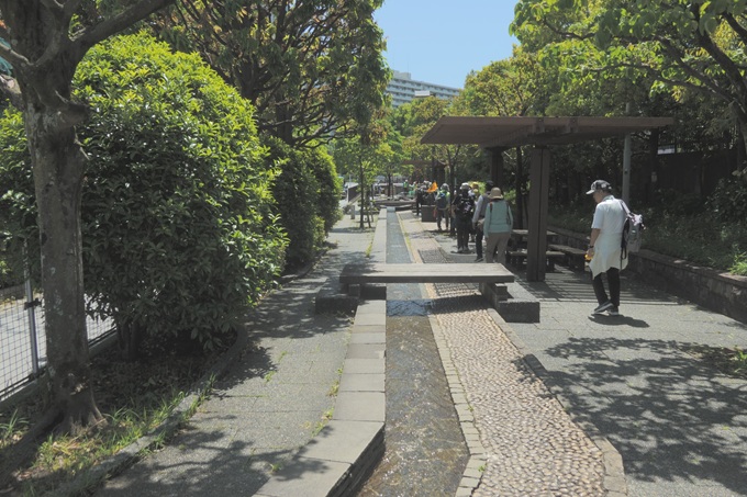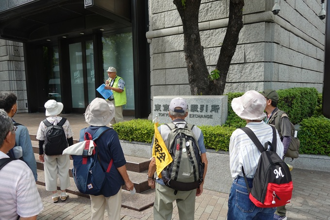 「門前仲町駅」から露店が並ぶ「富岡八幡宮」の参道を通り、隣接する「深川公園」(深川公園は2箇所あり、小さい方) で出発式。門前商店が並ぶ「深川神社」の参道を歩き、(大きい方の)「深川公園」へ。歩道脇に「伊能忠敬住居跡」の道標が ある道を歩き、渋沢栄一の別邸跡に栄一が創業した「渋沢倉庫」の脇に同社の守護神として祀られた「福住稲荷神社」を参拝。 両岸に整備された遊歩道「隅田川テラス」や「隅田川」「スカイツリー」が眺める「永代橋」を渡り、トイレのある小さな公園で休息。 ビルに囲まれた芝生がきれいな「坂元町公園」で昼食、「ござ」が無償で貸し出され寝転ぶこともできる。昼食後、午後のコースで は解散式を行える空き地が無いためここで解散式後午後のコースへ。日曜日で休場の「日本証券取引所」前を通り、「日証館」、 証券界の守り神・商業の神様として信仰を集める「兜神社」を参拝。「日本橋郵便局」脇には近代郵便制度の基礎を作り上げた 郵便発祥の地と刻まれた台座に「前島密」の像がある。「みずほ銀行兜町支店」の壁面には「銀行発祥の地」と刻まれた銘板や 「渋沢栄一」「第一国立」などの説明板が掲げられいて、「渋沢栄一」の功績の一部を知ることができるコースであった。