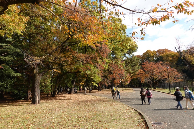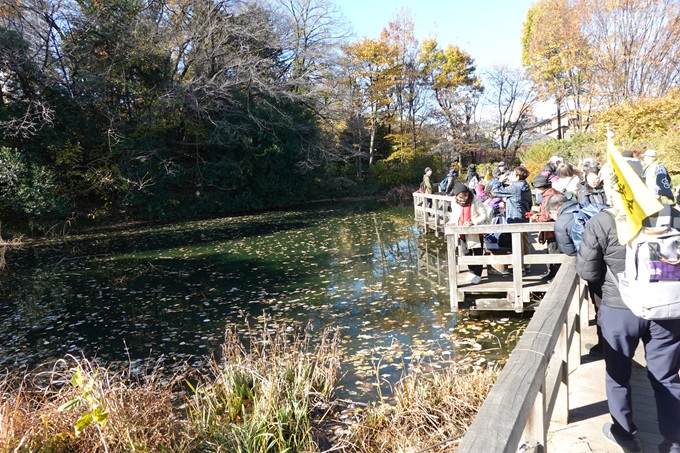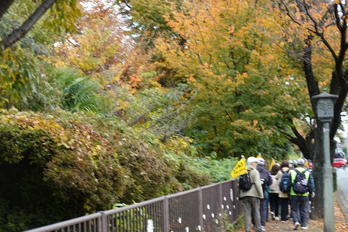 快晴、集合時の気温は10度を下回りやや風があり寒い。出発式で歩行時広がらないように注意があり、今回の例会では 守られていた。 駅前の小金井街道を北に進み、「上水公園」で休息後「玉川上水」の土手を歩き鎌倉時代の建築様式「海岸寺山門」を土手か 眺め、「日比谷公園」の5倍、「上の恩賜公園」の1.5倍の敷地面積は約7万㎡の広大な広さの「都立小金井公園」に入る。 紅葉が見頃の園内を歩き、「東京たてもの園」へ。毎月第三水曜は「シルバーデー」で65歳以上は入園料無料で入園。 園内で昼食後、各自自由に江戸時代から明治、大正、昭和初期の現地保存が不可能な文化的価値の高い歴史的建造物を 移築した30棟の復元した建物等を見学。 日中は朝の風も収まり厚着していた上着を脱いで歩いていた方もいた。