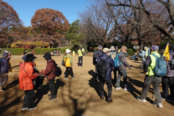 晴れ 参加者52名 コース6.5Km(最寄駅:北野駅・京王線) 難易度 普通 歩くコース:芦花公園駅南口広場(出発式)⇒水際の散歩道⇒烏山緑道⇒希望が丘公園(wc)⇒ 石仏公園(WC)⇒万葉の小道⇒桜木ふれあい緑地(昼食・WC)⇒世田谷八幡宮(解散式)⇒宮の坂駅