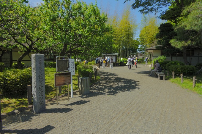 昨日降り続いた雨も上がり快晴の中芦花公園駅南口近くの公園で出発式。当初予定していた「世田谷文学館」は 休日振替の休館日に当たり前を通過。緑の木々の遊歩道を歩き「蘆花恒春園」へ。明治・大正期の文豪、徳冨蘆花(健次郎)と愛子夫人が、 後半生を過ごした住まいや竹林や手入れされた園内を散策、蘆花記念館を見学。 感情8号線沿いの小川が流れる遊歩道「水辺の散歩道」を歩き、レンガ造りのトンネルを潜り「希望ヶ丘公園」で休息。 烏山川を暗橿にした「烏山緑道」を歩き「石仏公園」で休息し、万葉集に詠まれた草花が植えられている「万葉の小道」 を歩き「桜木ふれあい公園」で昼食後「世田谷八幡宮」へ。 かつては奉納相撲の勝敗によって来年の豊作・凶作を占ったり、今年の豊作を感謝したため、境内には土俵や力石があり、 今でも毎年秋の例祭(9月15日)には東京農業大学相撲部による奉納相撲が行われている「世田谷八幡宮」境内で解散式。 ここから10分程度に「豪徳寺」がある。